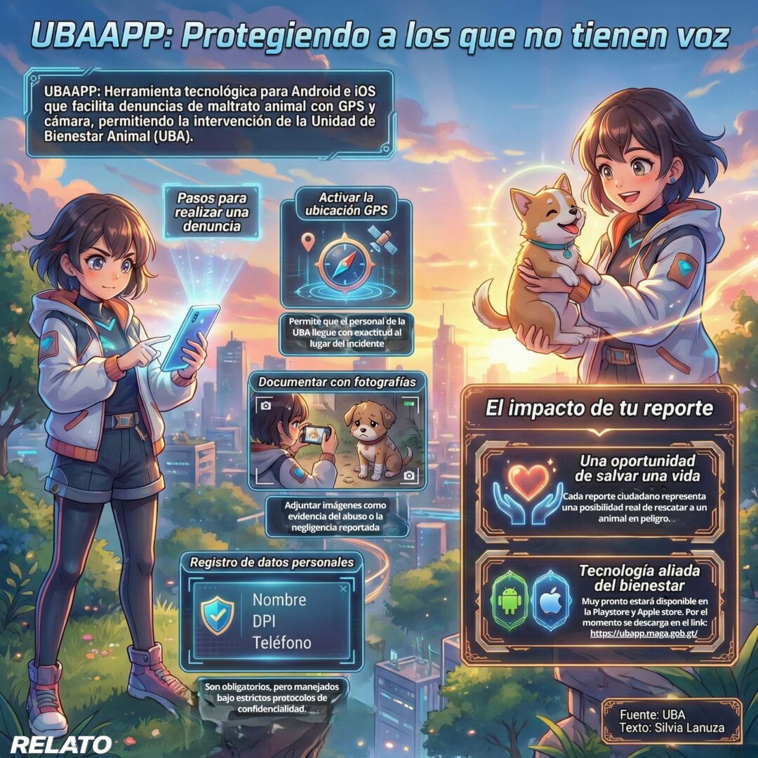 En el silencio de un patio olvidado o en el bullicio de una calle transitada, el maltrato animal solía quedar oculto bajo la sombra de la burocracia o el miedo a no saber cómo ayudar. Pero a partir de hoy, esa realidad cambia, El Ministerio de Agricultura, Ganadería y Alimentación (MAGA) ha lanzado UBAAPP, una herramienta digital diseñada para que la justicia por los animales esté a tan solo un par de clics de distancia.