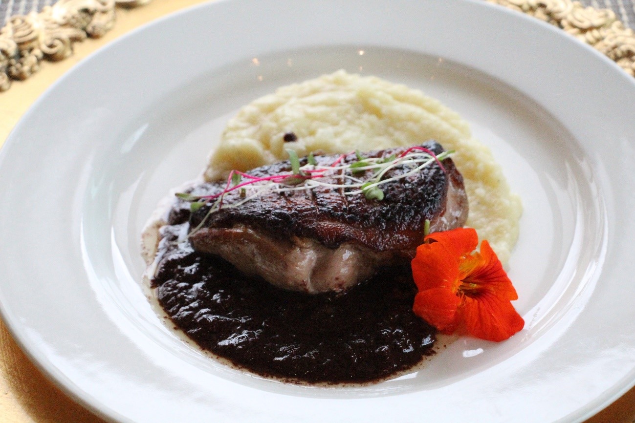 Magret de pato con salsa de chocolate